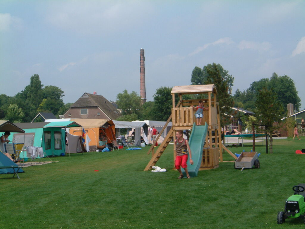 In het midden van het terrein is een groot speelveld voor kinderen met o.a. vrij gebruik van de skelters en de trampoline.